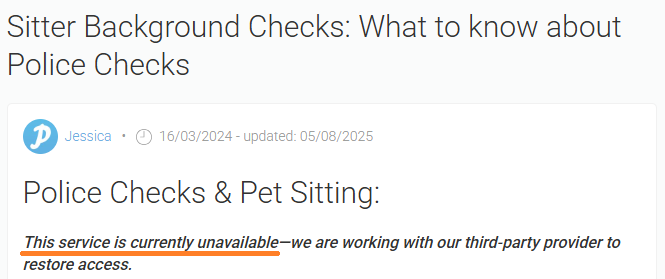 Pawshake's website confirms they are not currently doing any police checks. This risks your pet being booked in the care of someone who could have a criminal history of violence, theft, animal cruelty, evading police.