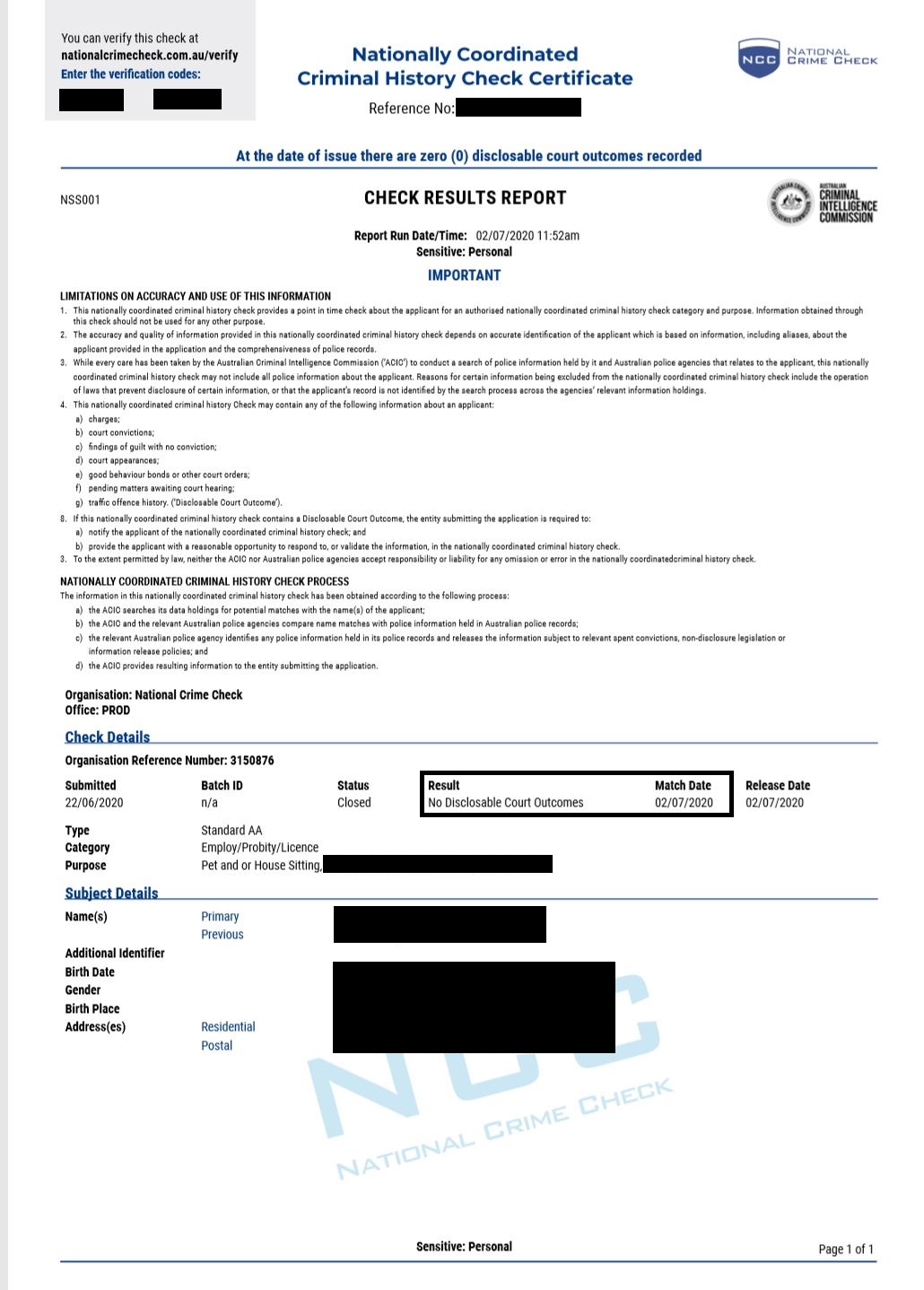 Pet Sitters and Dog Walkers on PetCloud undergo a Nationally Coordinated Police Check linked to a live Biometric check, verified through the Australian Government's Document Verification Service (DVS). This cross-checks identity documents — passports, driver's licences, Medicare cards — directly against official government records. The biometric liveness component confirms the person applying is genuinely the person in those documents, something a standard police check cannot do. It is virtually impossible to bypass or falsify. If a check returns a disclosable court outcome — violence, theft, drug trafficking, animal cruelty — that individual cannot have a live listing on PetCloud.