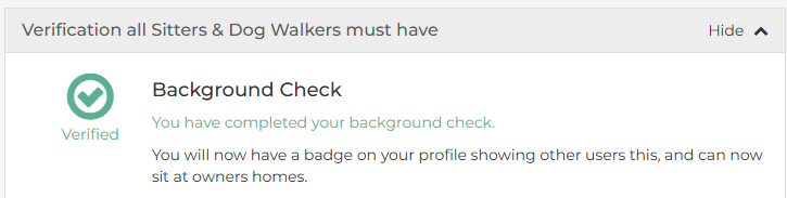 Pet Owners choose Sitters they can trust. An ID Check confirms you are an Adult 18+ and your identity. While a National Police check helps to show you have no history of animal cruelty convictions or serious offences — giving owners total peace of mind.